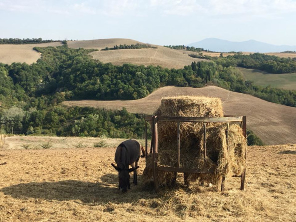 Перед глубоким погружением в московскую осень метнулись в здешнюю, вот вам Тосканы, уже соломенно-желтой, вперемежку с терракотой вспаханных полей; жили в бывшем борго, который весь теперь переделан в агритуризмо, кругом немцы с детьми, плещутся в бассейне, смотрят с лежаков на холмы; посмотрели на вечно жующих лошадей и молчаливых осликов; в борго есть даже своя церковь, подойти трудно, такое Джуманджи, заросли, скрывающие даже звонницу. Сотни гектаров земли, о которой заботятся; собственное производство злаков и бобов, строгие правила (не шуметь, не мешать соседям).