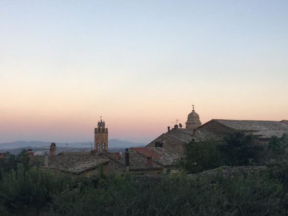 В Монтальчино снова вечерний ветер и розовый закат. Я еще не разобрала апрельский альбом; по результатам той поездки дом забит брунелло.