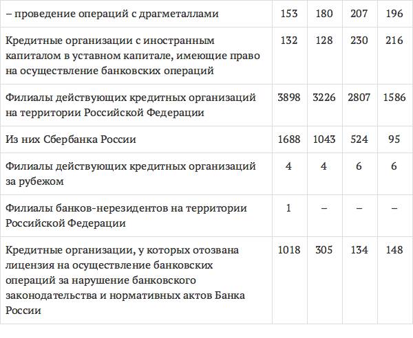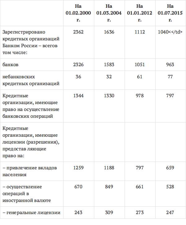 До 1995 года продолжался рост количества банков – их стало 2517, но с 1996 года началось их сокращение за счет банкротства и по другим причинам. Однако при этом банковская система становится более развитой не только внешне, но и по сути проводимых операций, так как повышаются устойчивость и надежность кредитных организаций, вытесняются мелкие банки.