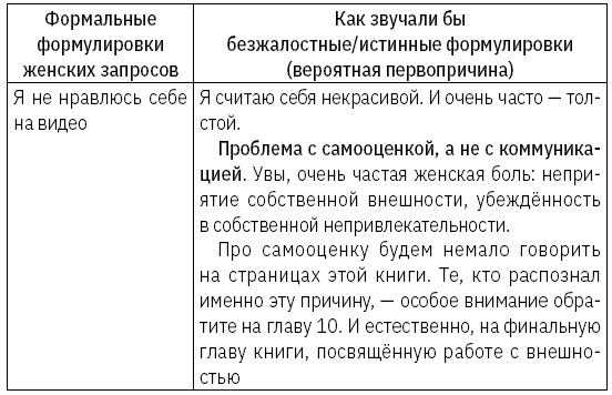 Но имейте в виду: если вы так и не решитесь стать к себе безжалостным, чтобы признать, что НА САМОМ ДЕЛЕ вы маскируете под желанием «научиться говорить красиво» (к слову, ненавижу эту формулировку – позже поговорим о её несостоятельности), то дальше эту книгу можете не читать – бесполезно. Равно как и бесполезно будет читать любые другие книги по ораторскому искусству или даже ходить на самые дорогие тренинги к самым эффективным тренерам. Без точной диагностики невозможно эффективное лечение.