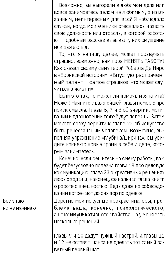 Уверена: вы, кто сейчас читает это предисловие, и без саморазоблачения меня раскусили. Именно поэтому в книге я предлагаю пойти дальше, чем вам предлагали ранее, говоря о коммуникации: от уровня безжалостного и бесстрашного признания первопричин наших страхов и сомнений, далее – подняться на ступеньку выбора пути решения вашей главной коммуникативной проблемы (хорошая новость – все инструменты известны!). Затем обязательно перейти к сложному этапу практического внедрения выбранных способов, на котором и спотыкается большинство учеников
