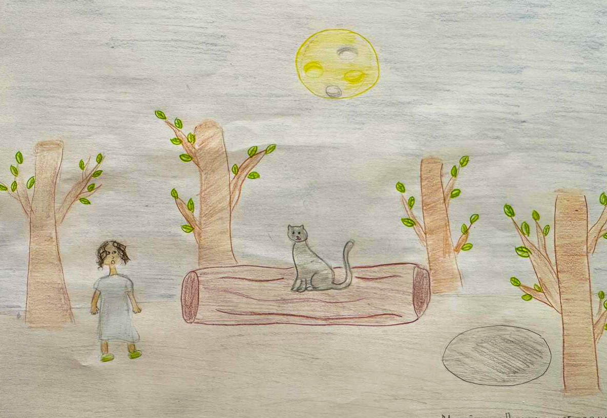 Только лес с высокими соснами, раскидистыми дубами и стройными берёзами, сквозь листья которых пробивается свет. Казалось, что из лета Вася очутилась в осени: всё вокруг было жёлто-оранжевым, но девочке не было холодно даже в пижаме, в которой она выбежала из дома. Желтая густая трава стелилась по земле, пышные белые цветы росли на открытых участках, а у самого основания деревьев виднелись грибы. Бабочки порхали с цветка на цветок, оставляя после себя переливающуюся пыльцу. Сладкий аромат земляники перебивал терпкий и влажный запах мха. Щебет птиц и скрип деревьев дополняли цикады, которые без умолку трещали.