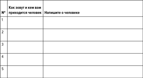 Напишите сведения о пятерых людях, с которыми вы больше всего общаетесь. Можете указать их должность, уровень заработка, интересы, хорошие и плохие привычки – все, что считаете важным.