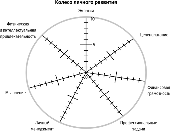 Программа личного развития будет состоять из прокачки семи основных умений. Семь разделов книги-тренажера соответствуют семи секторам на рисунке ниже.