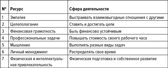 Итак, рассматриваем семь ресурсов – семь сфер деятельности.