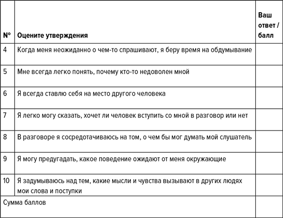 Определите узкие места вашей эмпатии, то есть те утверждения, которые вы оценили в 0 баллов.