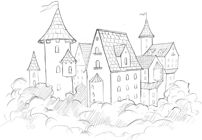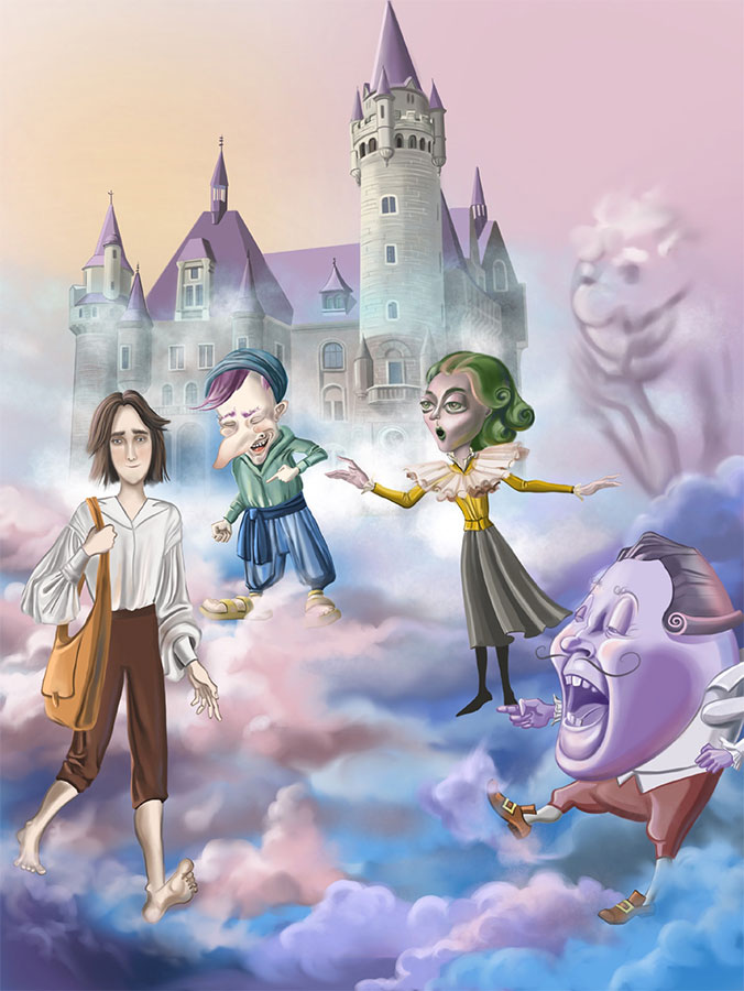 Жили эти люди в облачных домиках и насыщались своими фантазиями. Это было их основное занятие, а выходили они из домиков, только чтобы посмеяться над бедным обычным человеком. Не выдержал однажды Мир бесконечных насмешек и впал в отчаяние. Ушел подальше от всех и сел опечаленный на край облака.