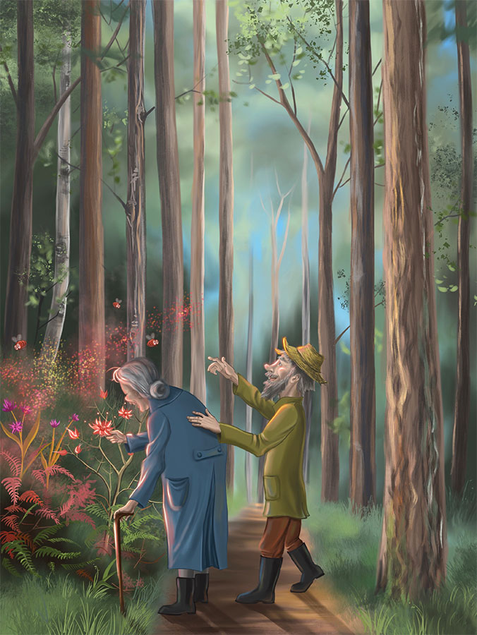 И рассказала старушка о волшебных мухах. Жили они уже тысячу лет в том лесу, и там, где они жили, все было необыкновенной красоты. И творили они с людьми чудеса: как только садились на человека, испытывал он огромное облегчение и начинал излучать счастье.