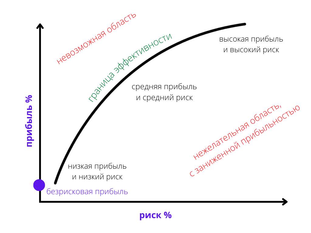 Зная ваш текущий риск и прибыль, можно оценить, насколько эффективна ваша инвестиционная деятельность. По Марковицу, «для того чтоб иметь максимум доходности при минимуме риска, ваши инвестиции должны находиться на границе эффективности».