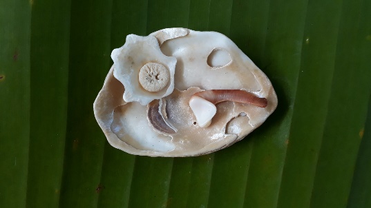Многие непарные устричные створки, с естественным рисунком, выглядят вполне по-растительному, как настоящие листики. В качестве веточек и стволов – обломки кораллов, как тут и были.