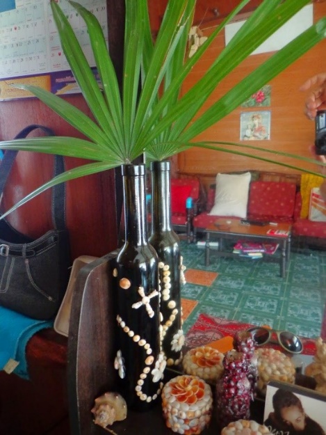 Или выложить их на стекле бутылки мелкими ракушками, вдобавок украсив импровизированный графин цветами и листьями. Вода в нем будет вкусная и полезная. А там, глядишь, и дела ваши пойдут на лад, ведь у воды есть мистическая связь с Богом!