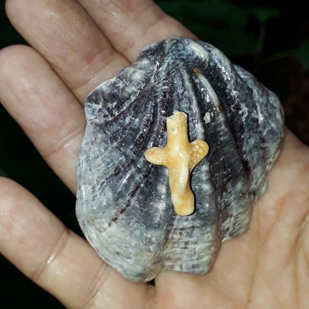 Вот какой гребешок я нашла, и даже приклеила к нему коралловый крестик.