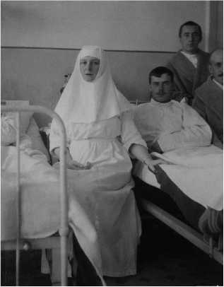 Сохранились фотографии, запечатлевшие императрицу и цесаревича Алексея, императрицу и великих княжон, посещавших раненых воинов и ухаживавших за ними.