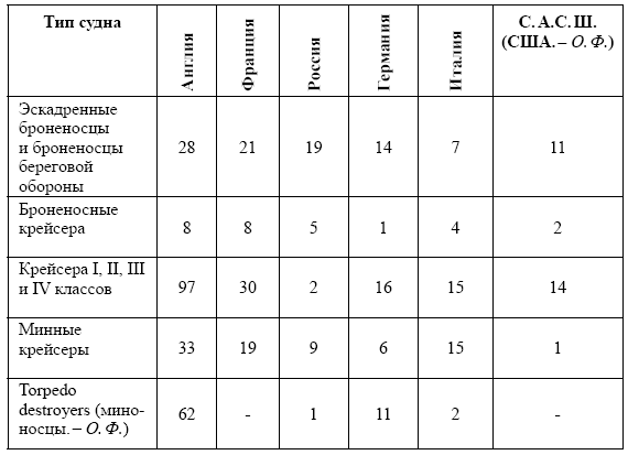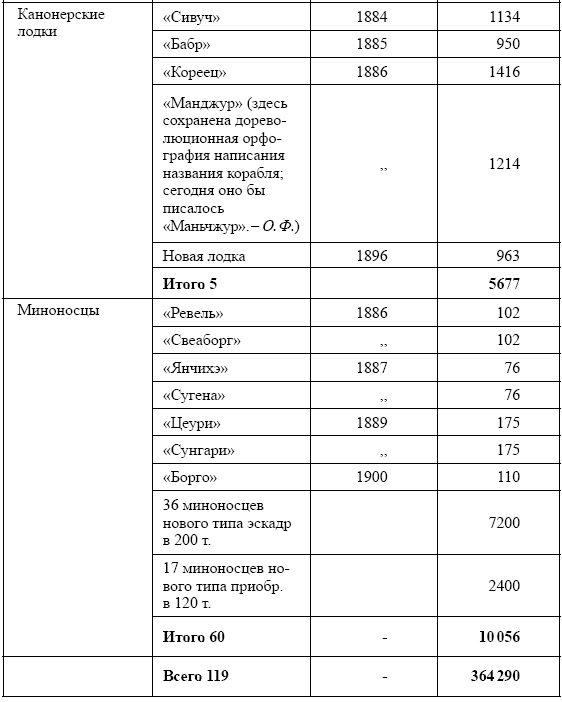 Все эти суда крайне желательно построить на своих верфях за восьмилетний период; в приложении (в нашем тексте – после таблицы 10. – О. Ф.) показано, какое число из этих судов может быть построено у нас, не прибегая к заграничным заказам.