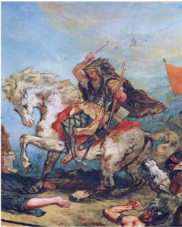 Получается, что обращение варваров-ариан в ортодоксальное христианство помогло избежать дополнительной линии раскола в будущей Европе. Период зарождения Европы отмечен несколькими яркими эпизодами. В частности, гунны – чуть ли не самые грозные захватчики – смогли продвинуться до самой Галлии, но там их вождь Аттила, которому в воображении всех европейцев, кроме венгров, приписывались самые пугающие черты, был разбит римлянином Аэцием на Каталаунских полях близ Труа, и ему пришлось отступить. Очень важное значение имело обращение в христианство франков, которое последовало за обращением их вождя Хлодвига, в период между 497 и 507 г.