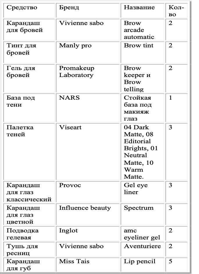 Кисти и аппликаторы. Кисти являются основным инструментом для нанесения макияжа. От их качества зависят точность и равномерность нанесения продуктов. Важно иметь кисти различных размеров и форм для работы на разных участках лица. Покупая качественные кисти, вы вкладываетесь в свою работу на многие годы. Повторюсь, мои, купленные пять лет назад, до сих пор в отличном состоянии. Хорошие кисти по соотношению «цена – качество», которые я бы порекомендовала: Ludovik, Manly Pro, Roubloff и др.