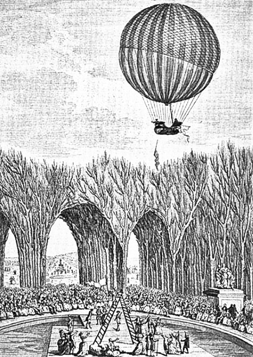 Полет пилотируемого воздушного шара, наполненного водородом. Шар был запущен в саду Тюильри в Париже 1 декабря 1783 г. Пассажирами были Жак Шарль и его помощник М.-Н. Робер