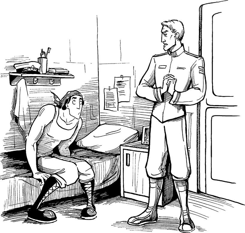 * * *Капитан довел Теодора до своей каюты, открыл дверь и молча пропустил его вперед. Пилот немедленно забился в самый дальний угол и виновато ссутулился. Учитывая, что Тед был на пару сантиметров выше Станислава, да и вообще парень не мелкий, капитану стало смешно, но ради поддержания авторитета он сурово сдвинул брови, устрашив пилота еще больше.