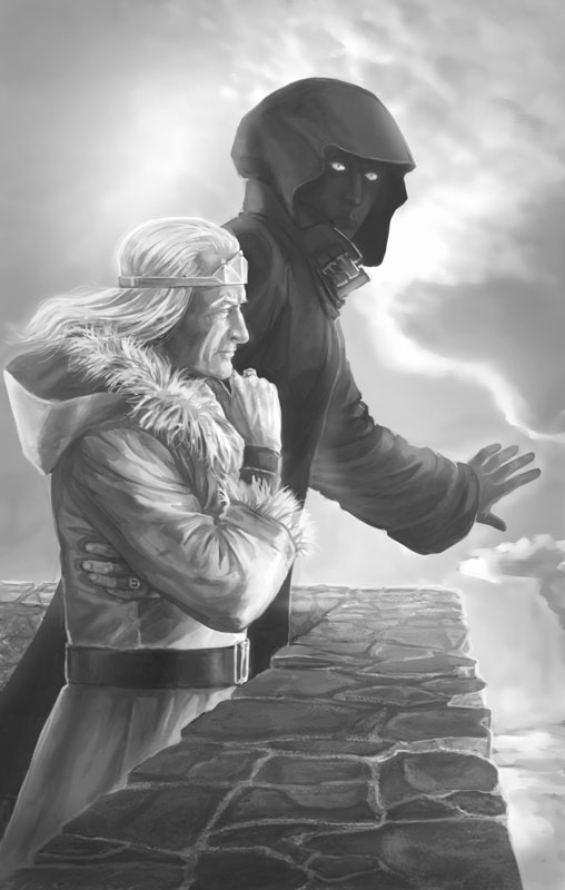 На площадке центральной башни у каменного парапета замерли двое, словно олицетворяющие собой противоположности. Один, седовласый мужчина в светло-сером, украшенном дорогим серебряным шитьем и подбитом лисьим мехом плаще, с трудом удерживал приличествующую его сану маску бесстрастия на благородном лице, отмеченном печатью многих прожитых лет. Ныне правящий Королевством Дармаш Бариус Семнадцатый, достойный представитель династии Даранов, глядя потускневшими, выцветшими от старости голубыми глазами на унылый окружающий пейзаж, как никто другой ощущал зимнюю стужу – холод, изо дня в день вымораживающий его сердце и душу. Достойного правителя заботило будущее своего народа.