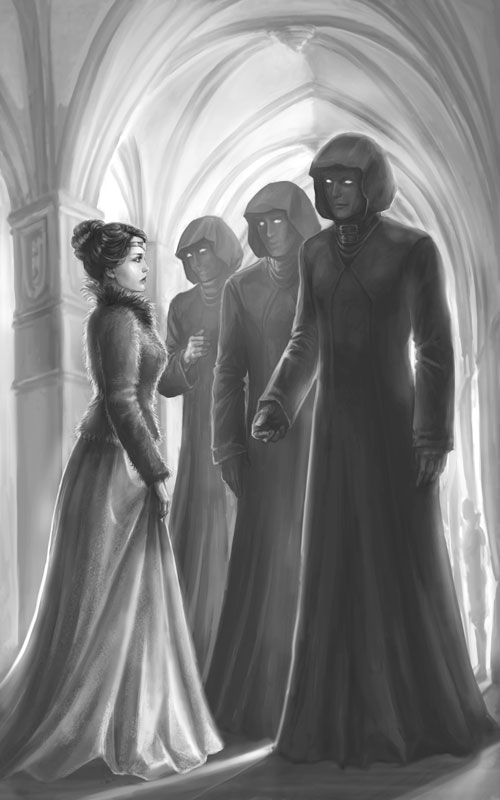 Стоило замечанию сорваться с уст, воздух в центре зала словно загустел, потемнел, завихрился, а потом из воронок начали одна за другой появляться темные фигуры в плащах.