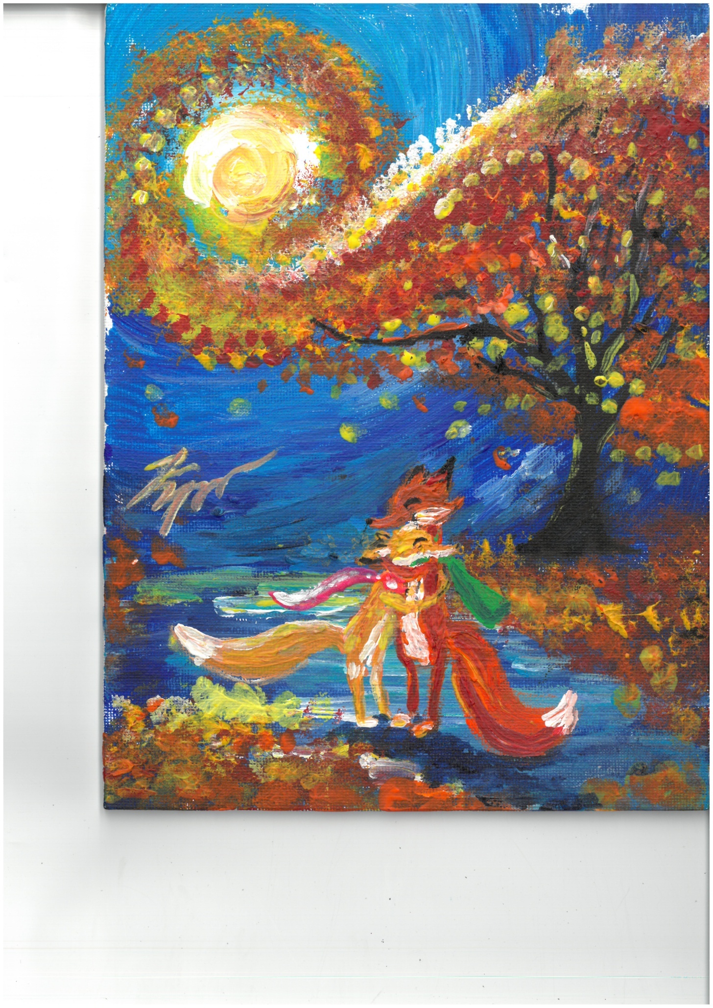 Про себя он уже почти ликовал.Дойдя до безопасной лесной полосы, они решили остановиться.Алексис лег рядом с лисичкой. Она бережно провела изящной лапкой по его царапине, и начала вылизывать место укуса.