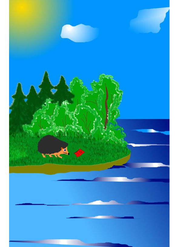 Прогуливаясь у озера, ежик увидел на берегу красивый глянцевый журнал.