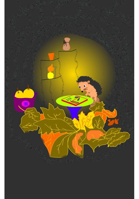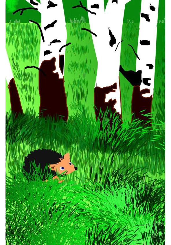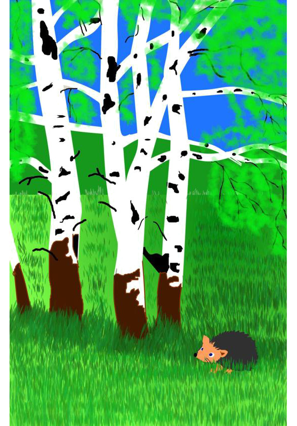 Прошло лето. Наступила хмурая осень. Листья на березе пожелтели и окрасились нежно красный цвет с розовым оттенком. Ежик надел несколько опавших березовых листьев себе на иголки, потом еще немного посидел у березы, а затем уставшей походкой поплелся свою нору.