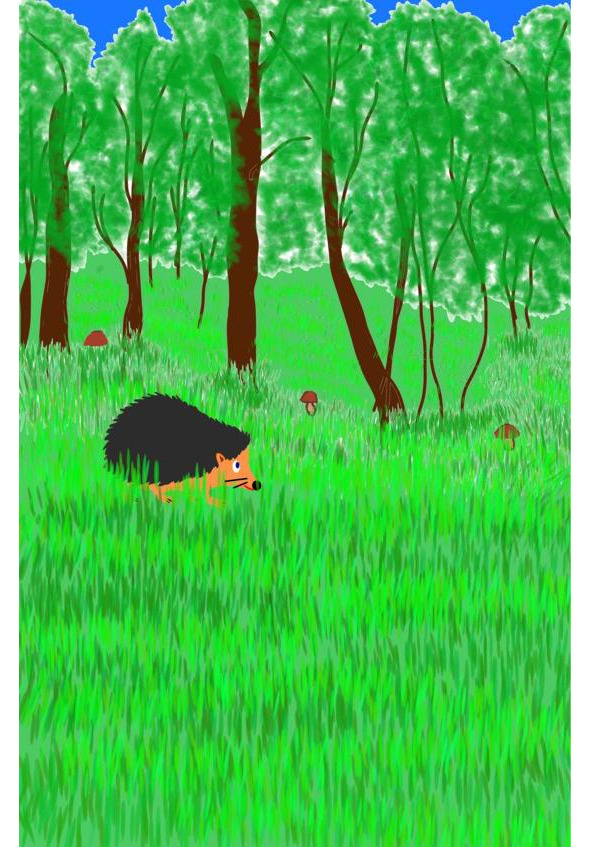 В лесу у древнего дерева жил забавный ежик. Глазки у него были небесного цвета, а серые иголки на спине острые, острые.