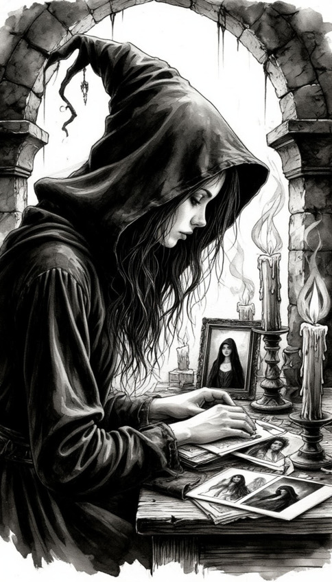 Вериника вошла в гостиную, в голове звучали обрывки страшных фраз, произнесённых ночным гостем. Она застала Моргану за тем же дубовым столом, но теперь он был завален не склянками, а россыпью фотографий. На них были запечатлены девушки неземной красоты. Моргана подняла на нее взгляд. Ее темные глаза, казалось, видели насквозь, читая ночные страхи как раскрытую книгу.