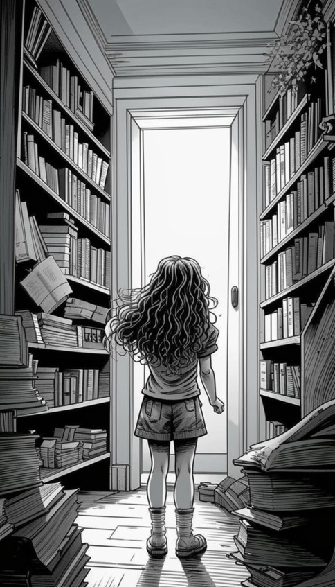 Бася чувствовала, что она вот-вот найдёт – что-то особенное. Она внимательно оглядела нижнюю полку в поисках книги, которая бы привлекла её внимание. Взгляд упал на большой коричневый фолиант. Бася попыталась его вытащить и тут вдруг произошло нечто невероятное.