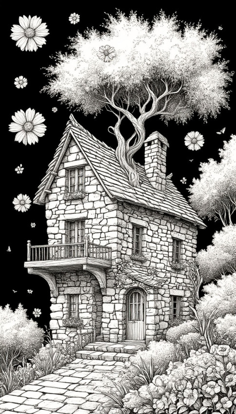 Дом лекаря выглядел необычно – он был сложен из камней, украшен резными узорами и цветами, а на крыше его росли раскидистые ивы, создавая приятную тень. Внутри было уютно и тихо: стены украшали картины из засушенных трав, а на окнах висели занавеси из сухих листьев и трав.
