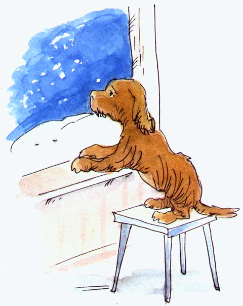 После обеда он любил отдыхать на широком белом подоконнике, положив голову на лапы, глядя на улицу. Если шёл снег, то, наблюдая, как тихо падают снежинки с неба, Проша размышлял: «А ведь это, наверное, тоже сахар, только небесный и, должно быть, очень вкусный. Вот бы попробовать этого сахара!»