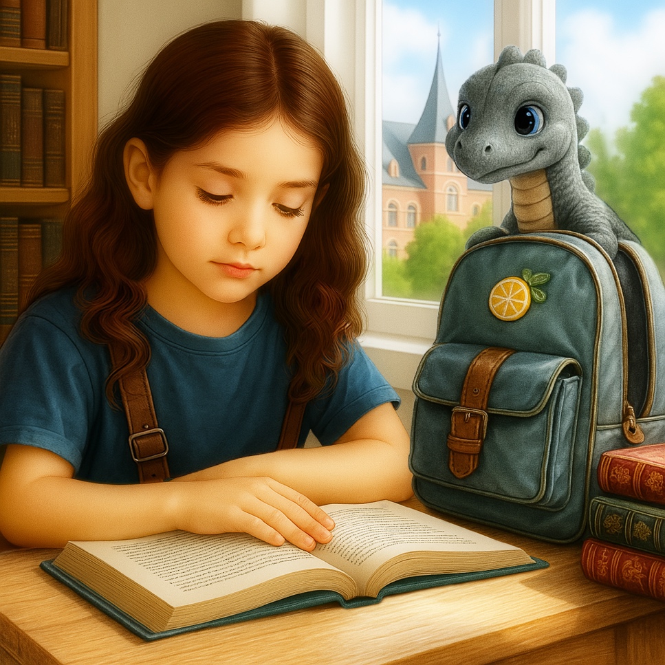 Она бежала по тропинке, чувствуя себя настоящей исследовательницей. Вскоре девочка наткнулась на небольшой грот, спрятавшийся за кустами. У входа валялась лимонная кожура. Любопытство взяло верх, и Лия осторожно заглянула внутрь. Грот оказался неглубоким, и в дальнем углу среди округлых валунов Лия увидела серого динозаврика с длинной шеей и большими голубыми глазами.