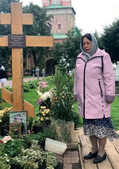 З. П. Селезнева на могиле архимандрита Кирилла (Павлова) в Свято-Троицкой Сергиевой Лавре в августе 2019 года