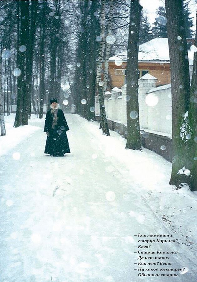 Тут человек мимо идет, я его останавливаю: «Батюшка, можно вас спросить?» – «Да, да, спрашивайте, что вы хотели?» И улыбается. Приятно улыбается. «Как мне найти старца Кирилла?» – «Кого?» – «Старца Кирилла». – «Да нет таких». – «Как нет? Есть». – «Ну какой он старец, он обычный старик». Думаю: «Как же так, все его называют старцем, прозорливым, все его любят, а этот человек говорит, что он обычный старик». – «А что хотел?» – спрашивает он. «Да так, увидать хотел». – «А что его смотреть-то?» А я в форме был. Этот священник меня спрашивает: «У тебя там оружие есть?» – «Нет, оружия нет». – «Ну, пойдем».