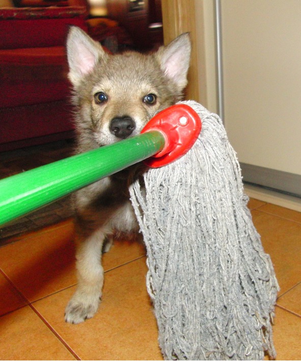 Начну с отличий. Влчак часто бесшумно подходит со спины или стоит и смотрит в спину не только человеку, но и моим кошкам. Он по-другому пахнет. У него есть свой запах, но не песий. Он и мокрый не пахнет псиной. Постоянно прячет косточки и другие ценные предметы. Канис закапывает их у себя в клетке долго и тщательно в самом дальнем углу. Он вовсе не голоден – это делается про запас. Знаю, что и у других пород есть мастера делать заначки, к примеру лайки и таксы, но в основном, конечно же, охотничьи собаки. Здесь же это делается на уровне рефлекса, в полуторамесячном возрасте. Постоянно хватает зубами руки, как бы ощупывая их. Не кусает, а именно прихватывает. Полезла с ним целоваться, так он мне чуть щёку не прокусил на радостях, при этом визжит от счастья. В основной своей массе молчит. Абсолютно всё делает молча, поэтому за ним тяжелее следить. Отмечу хватку: игрушку хватает одним щелчком и намертво. Очень сильный прикус.