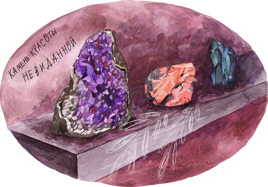 Ярофей чуть-чуть повернул камень на полке, пытаясь поймать тонкий луч яркого вечернего солнца. Ему это удалось, и кристаллы вспыхнули загадочным фиолетовым светом.