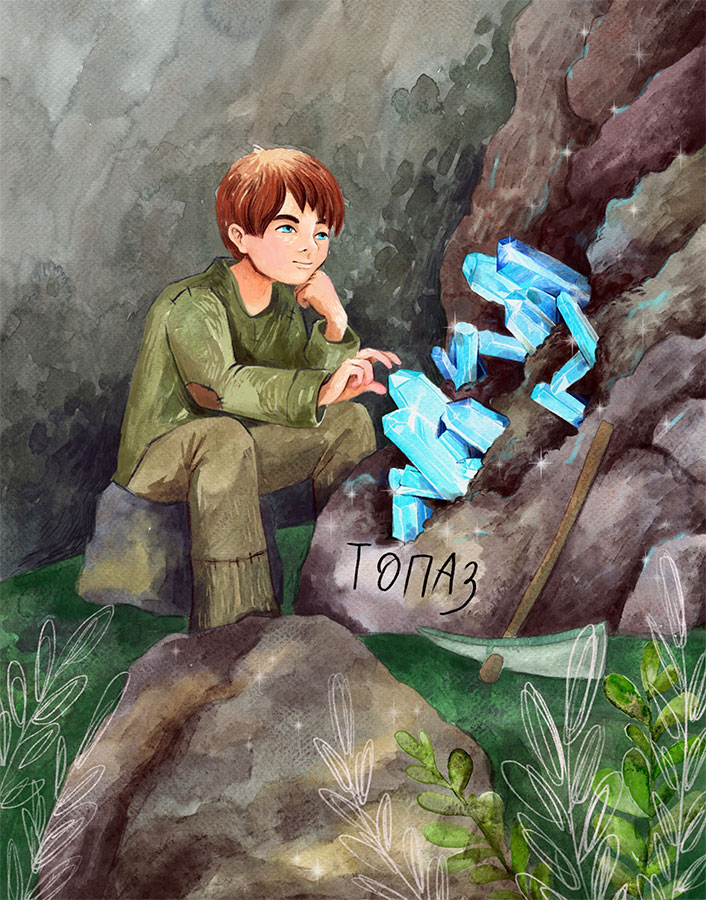 – С тех пор прошло много времени. Сейчас сейды заботятся обо всех самоцветах, которые есть в горах. А когда рождается голубоглазый сейд, в память о нашем брате, что первым признал великолепие голубого топаза, у горного семейства праздник. И тогда сейды делают какой-нибудь подарок миру. Например, когда родился Чазаль, сейды указали людям дорогу к огромному, чарующей красоты голубому топазу. Люди сразу взяли его и увезли в большой город. Там он хранится в музее как редчайшая драгоценность. И все, кто приходит в этот музей, могут любоваться им.
