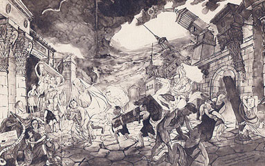 «Последний день башенной эпопеи». Групповая карикатура на архитекторов Ташкента. 1955