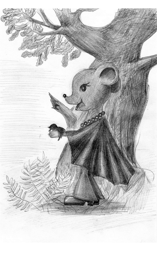 ЕЖИК(вздыхая)Да, конечно, Ква-лягушка,Может, встретим наш цветок.ВЕДУЩИЙВ лес глухой зашли зверюшкиИ пошли в лесную даль.Держат ушки на макушке,Ну, а сердце жжет печаль.Им летит навстречу мышкаВ серой шубке, два крыла.МЫШКАДа, торопитесь не слишком.Цветок ворона забрала.ВЕДУЩИЙВстрепенулись Ква с Пыхтушкой,Мышь метнулась побыстрейКва и Еж-большие ушкиПоспешают вслед за ней.Добежали до пригорка,Где раскинул ветви клен.Пригляделись братцы зорко:Отчего тревожен он?ЛЯГУШКА(прислушиваясь)Никого кругом. А все же,Вроде, плачет там ребенок.МЫШКА