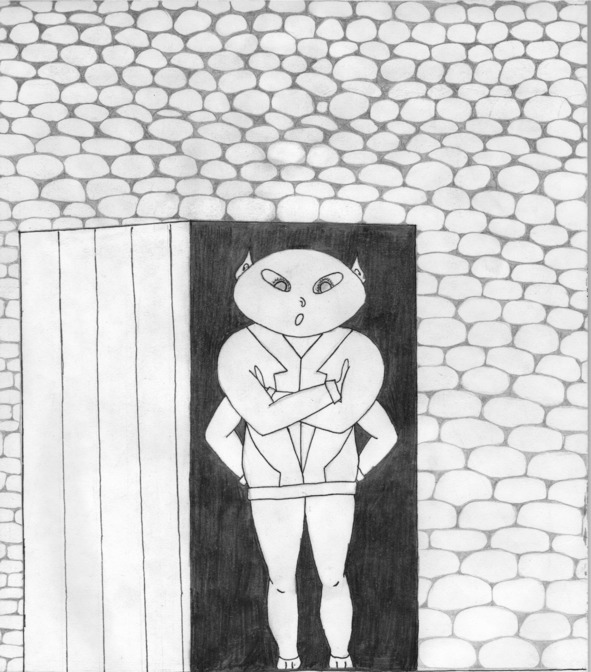 Мега постучала в перекошенную дверь. Не прошло и пары секунд, как дверь открылась и на пороге появилось маленькое красное существо. Две короткие ножки, обутые в красные сандалии и обтянутые красными лосинами. Четыре красные руки, заканчивающиеся трёхпалыми кистями, всё это было накрепко прикреплено к маленькому, пухлому тельцу, на котором была облегающая алая куртка. Шеи у существа не было, но была голова, вытянутая, как дыня, вот только справа налево. Глаза у существа были тоже очень вытянутыми и имели бледно-розовый цвет. Рот был маленький и вытянутый кверху. Нос скорее был похож на крючок, но всё же был на своём месте. Существо было без бровей и волос.