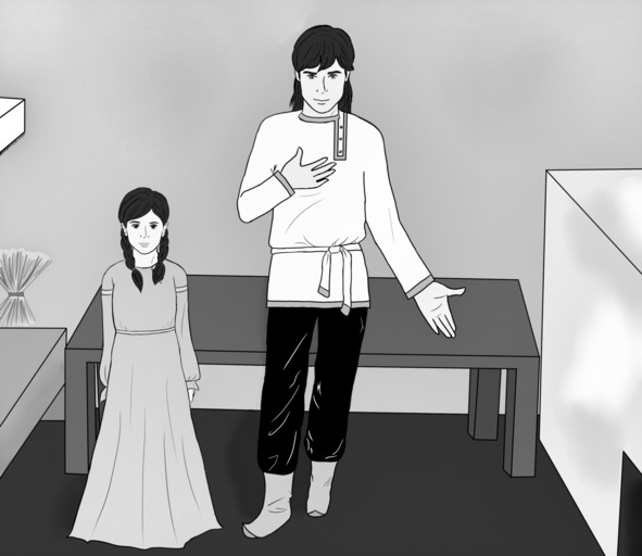 К Анастасии подошёл Стоян и, выдав своё смущение ярким румянцем на щеках, пригласил её сесть к столу. Все, как по волшебству, уселись вокруг стола, оставив только одну лавку, где были разложены наряды, стоять чуть поодаль от всех. Курносая девушка одна осталась на ногах и не села за стол к остальным, она важно прошлась возле лавок и начала распределять, кто в этот раз кем будет наряжаться.