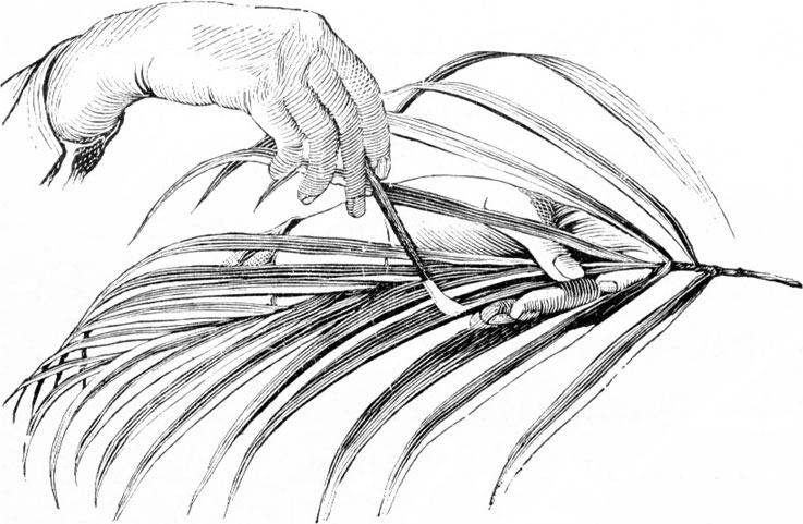 Рис. 6. Чистка желобчатых листочков финиковой пальмы кистью