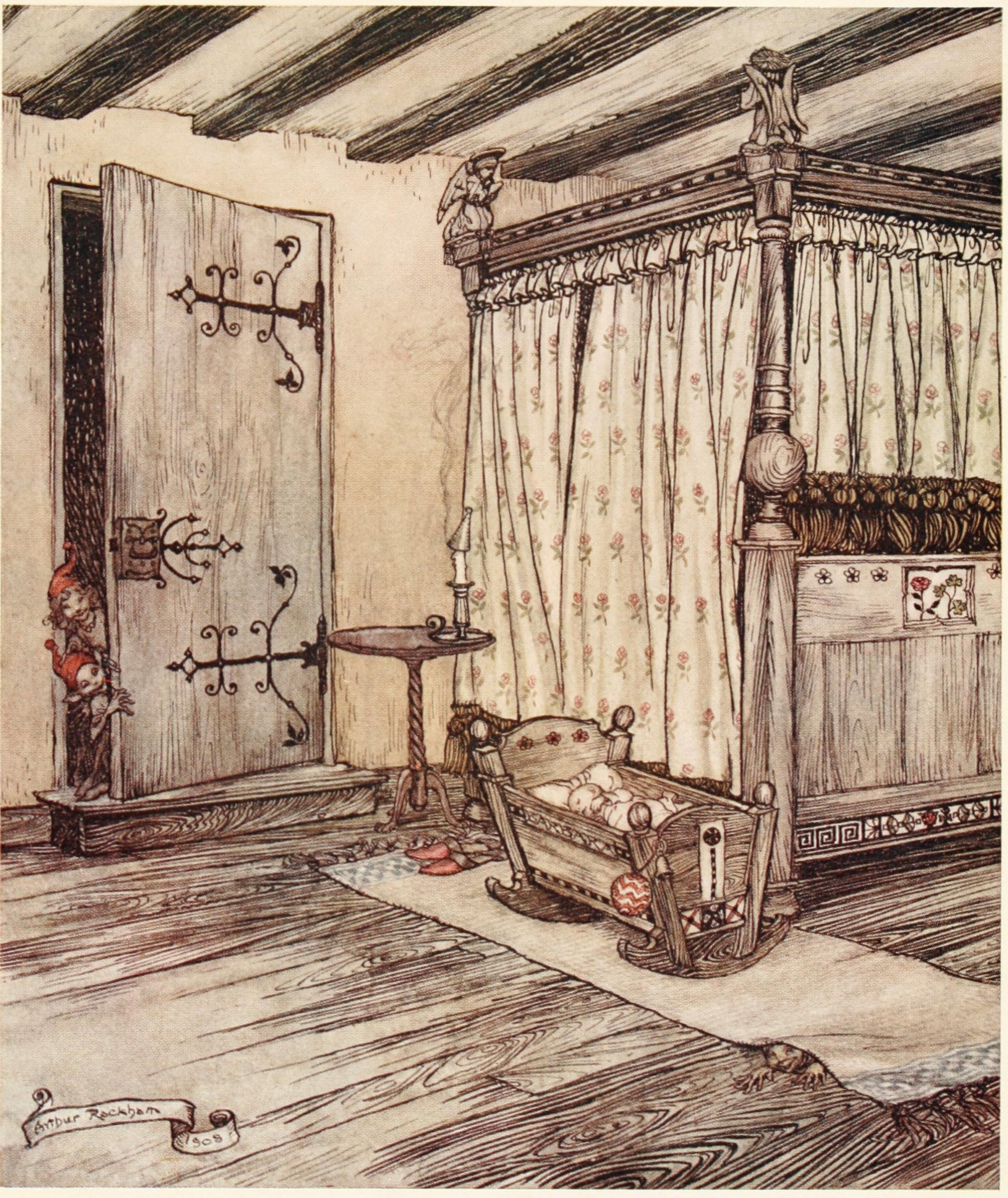 В сказке «Подмена в Тюрингском лесу» обмен детей происходит в то время, когда мать ходит за дровами. Собственно, запреты устанавливались не ради матери, а ради защиты младенцев. Но, в любом случае, эти запреты – единственная положительная сторона веры в подменышей.