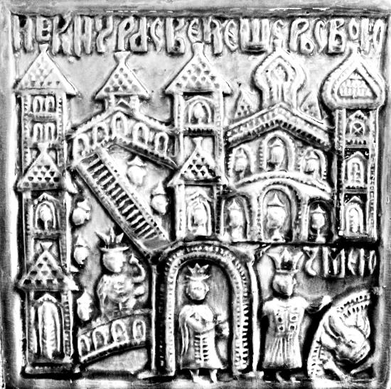 На рельефном изразце XVII в. изображено, как «некий царь» отдает свою дочь ужасному дракону. В центре картинки условный город и сам царь, стоящий в проеме врат. Справа от него несчастная царевна, обращенная к змею. Монстр запечатлен в боевой позе, вылезающим из норы или озера. Слева и на заднем плане намечены зрители душераздирающей сцены, которая, судя по многочисленным копиям, явно интересовала и забавляла реальных людей XVII–XVIII вв. В другом варианте этого изразца [39] царевна стоит в проеме, а царь изображен возле норы, словно дающим чудищу зарок, а потом и среди зрителей (то есть в одной картинке совмещаются разные моменты, что характерно для древнерусской иллюстрации). Но как бы ни переосмыслялись человеческие фигурки при копировании изразцовой формы, как бы ни стирался, превращаясь в витиеватый орнамент, текст верхней надписи, – змей всегда остается в своем убежище, над которым отдельно выписано последнее слово фразы: «ЗМЕЮ». Потому что именно змей и ужасное жертвоприношение, а не какой-то безымянный царь является смысловым центром сюжета, создает его привлекательность.