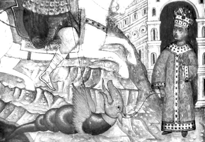 На Руси уже из первых переводных книг были известны истории о попытках скормить чужеземных царевен змееподобным монстрам. Самым популярным был сюжет о спасении византийской царевны Елисафы Георгием Победоносцем («чудо о змие»). В литературных изложениях этой легенды большое внимание уделено именно дракону: он размером с гору, он выходит из озера с ужасающими звуками, он дышит огнем и испускает яд (что вообще свойственно змеям). От его свиста кони сбрасывают всадников, а его бронированная чешуя неуязвима для стрел лучников. В Средневековье одно и то же произведение могли переводить или перерабатывать несколько раз: новые редакции часто содержат интересные дополнения, или, наоборот, в них последовательно исключаются какие-то темы. И в поздней пространной редакции этой повести особенно подчеркивается, что перед нами не просто змей, а воплощение самого зла, против которого выступает доблестный и праведный герой [61]. Поэтому торжество святого над драконом с самого начала соотносится со словами Псалтири: «И на аспид и василиск наступит, и попрет лва и змия» (ср. Пс. 90:13). В этой версии змею сопутствуют и другие чудовища: «множество сотоническо», бесы, невидимо атакующие людей. У дракона китовая голова (кит, змей и крокодил часто смешиваются и заменяют друг друга в Средневековье) на длинной шее, что напоминает автору гигантское здание, чудовищное вместилище. Наконец, змей прямо называется сатаной и дьяволом, трехголовым псом, что роднит его с адским Цербером, ненасытной пастью преисподней, огненной бездной, стремящейся сожрать весь мир (сказано, что погибающие от змея люди оказываются в аду).