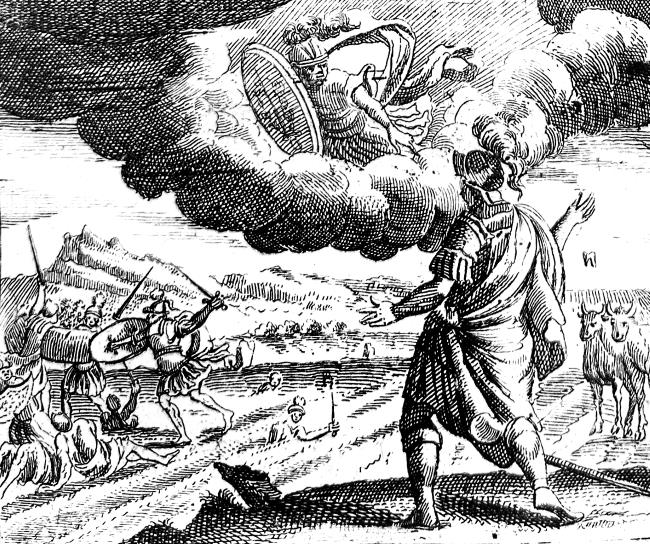 Агролим убивает змия. Убивши змия, глаголет, стоя на коленях:
