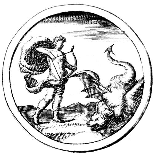 Аполлон и змей. «Символы и эмблемата» (№ 454), 1705 г.