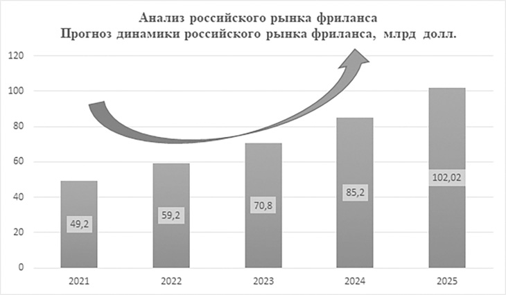 Проведенный независимый анализ российского рынка фриланса в 2021 году показывает, что прогноз данного направления оценивается уже к 2025 году в 102,02 млрд долларов. За последний год на российском рынке доля фрилансеров выросла почти на 13 миллионов человек! Вы просто вдумайтесь, какой это огромный показатель!