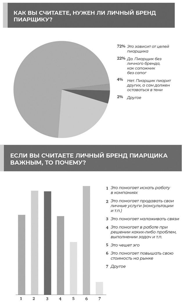 Раньше считалось, что личный бренд касается лишь людей творческих профессий. Однако сегодня это не так. Он касается каждого! Ведь каждый из нас заинтересован в поиске хорошей работы, улучшении текущих условий, в заинтересованности хантеров собственной персоной, в карьерном росте. Все это будет происходить, если личный бренд будет транслировать в информационном пространстве вашу экспертность и имидж. Это подтверждают и результаты исследования в коммуникационном сообществе #prspb, которые были опубликованы в 2020 году. Там пиарщики отвечали на вопросы.